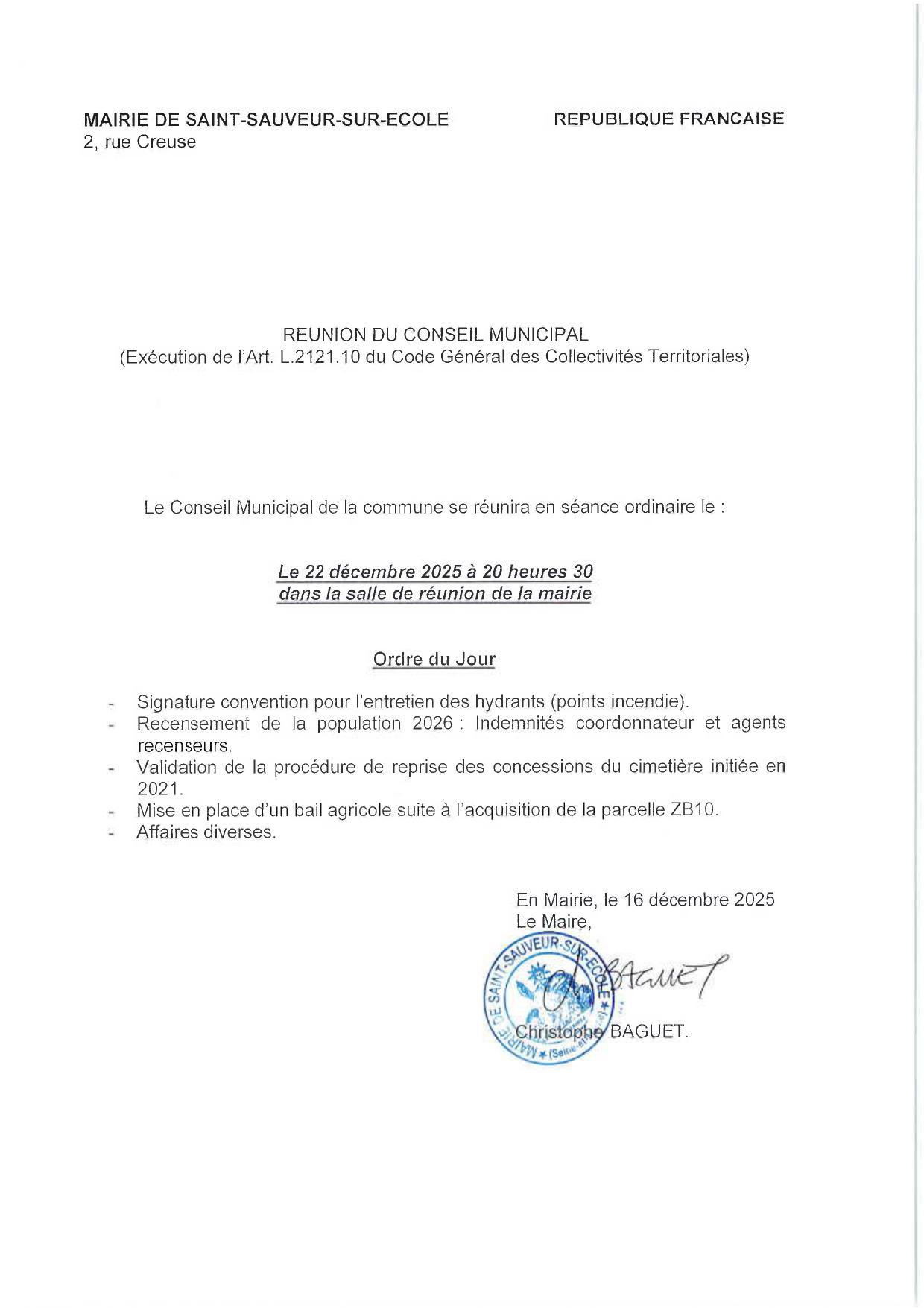 Réunion du Conseil Municipal